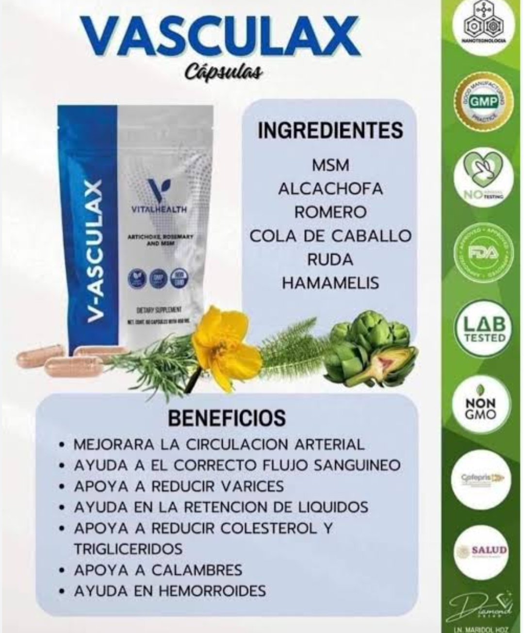 V-Asculax Suplemento natural para mejorar la circulación, prevenir várices, trombosis y edemas. Alivia dolor y calambres. ¡Mejora tu Salud!