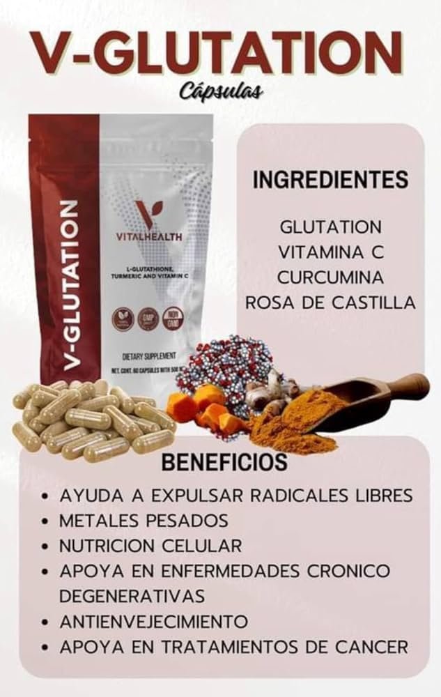 V-Glutation | VitalHealth | 60 cápsulas de 498mg c/u